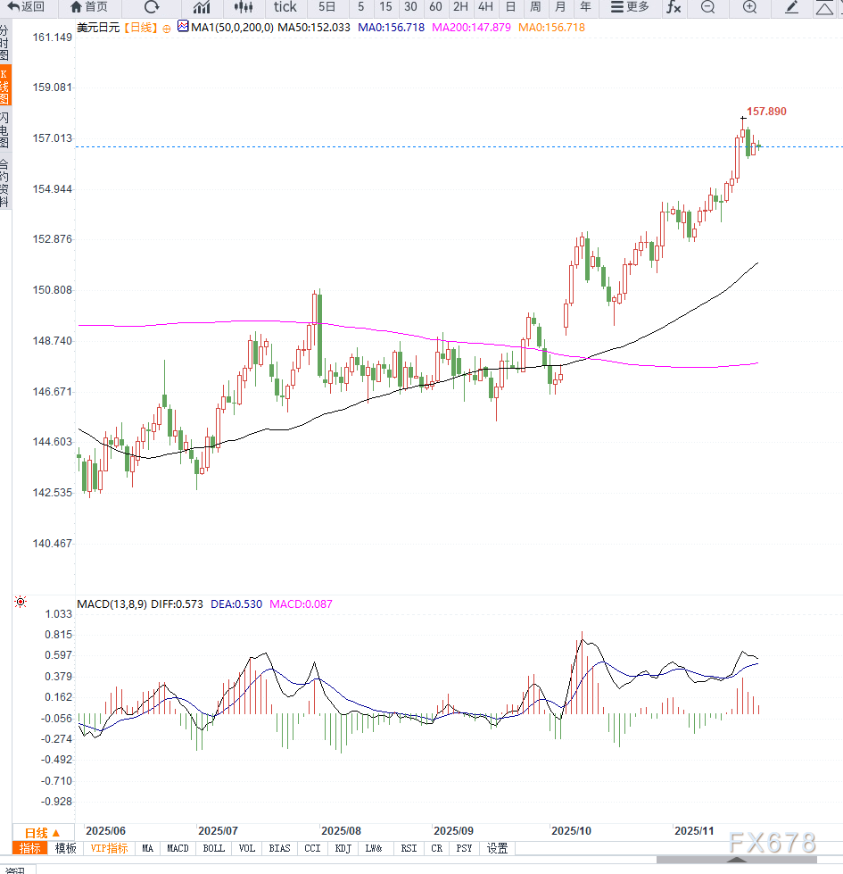 汇通财经APP讯——周二(11月25日)美元兑日元于156.75附近窄幅震荡。日本堪忧的财政状况与日本央行政策紧缩路径的不确定性,共同制约了日元多头的激进押注。加之市场风险偏好回暖,可能进一步限制避险...