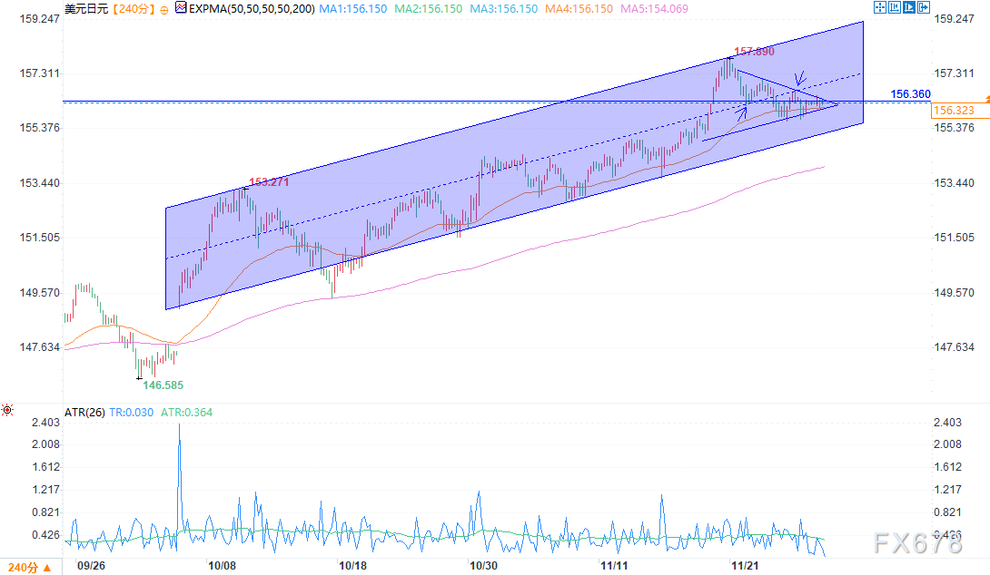 汇通财经APP讯——在全球外汇市场的多空博弈中,美元/日元汇率近期呈现窄幅震荡态势,目前已企稳于156.300关键水平附近。从技术指标来看,平均真实波幅(ATR)指标持续处于近期低位区间,且整体保持下行趋势。这一现象的背后,既与美国感恩节假期带来的市场交易节奏放缓直接相关——假期期间不少机构投资者选择离场观望,市场资金活跃度显著降低,买卖盘力量相对均衡;更反映出当前外汇市场参与者的谨慎心态,面对多重交织的影响因素,交易者正全面权衡利弊,暂未形成明确的方向性共识。