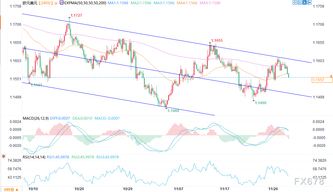 汇通财经APP讯——周五(11月28日)欧盘时段,欧元/美元的分时图处于短期快速下行后的企稳阶段,整体呈现日内空头主导、尾盘微幅修复的节奏。汇价在1.1557附近窄幅震荡,较前一交易日微跌0.32%。...