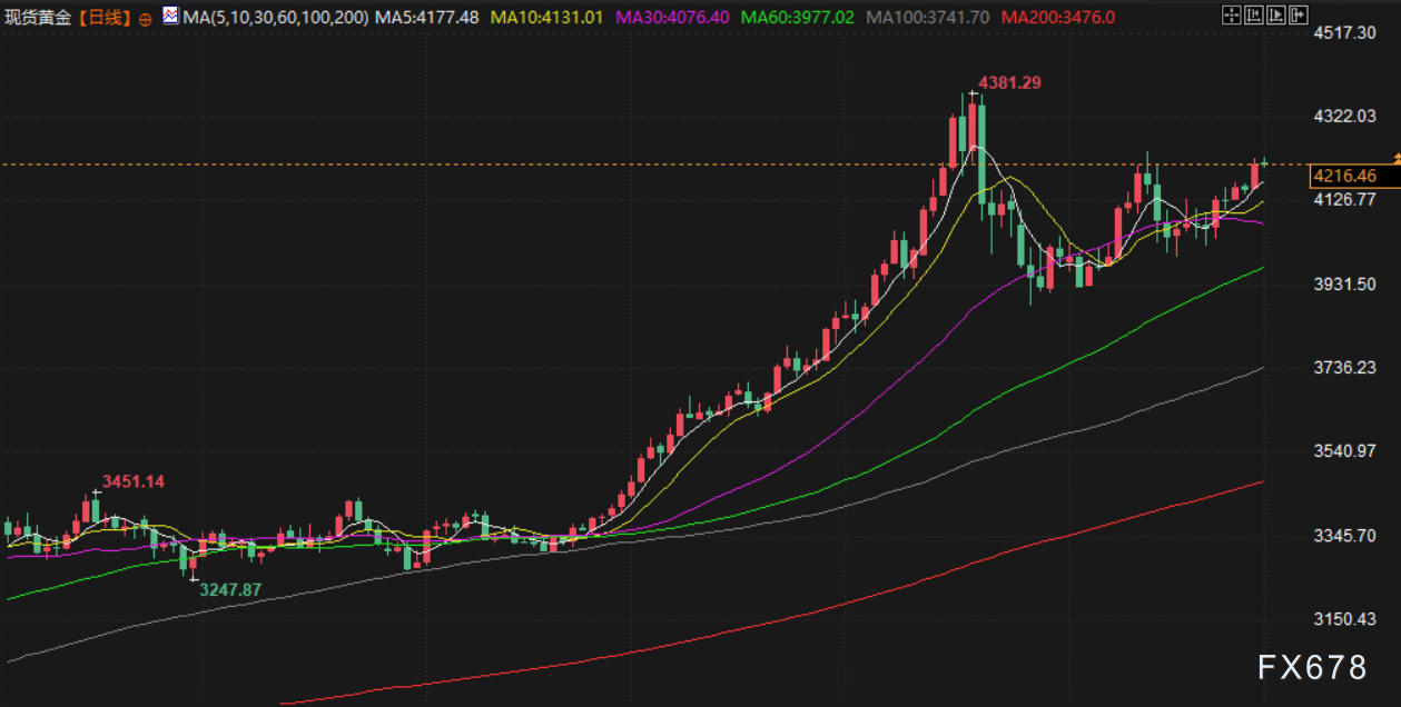 现货黄金上周五上涨1.6%,创下11月13日以来最高水平至4226.56美元/盎司。上周金价累计上涨3.9%,11月涨幅达5.5%,实现连续第四个月上涨。