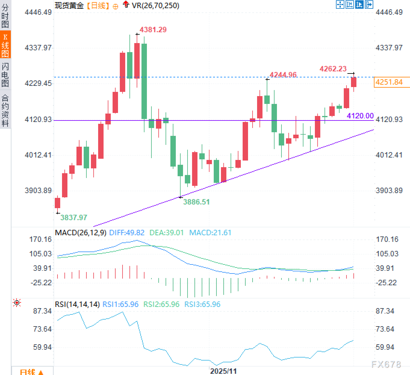 汇通财经APP讯——12月1日,星期一。全球金融市场在进入年末关键政策窗口期之际,呈现出风险偏好收敛与宏观预期调整并行的格局。美元指数持续承压,美债收益率小幅回落,而地缘政治谈判释放有限缓和信号,但市场整体仍维持谨慎情绪。在此背景下,大宗商品市场走势出现结构性分化,贵金属尤其是现货黄金延续强势表现,再度刷新近六周高点。