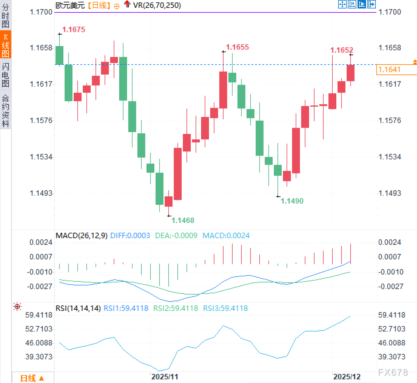 汇通财经APP讯——12月3日,周三欧洲时段早盘,欧元兑美元维持强势格局,价格回升至1.1650附近,延续此前两个交易日的积极收盘态势。当前汇价在技术形态上呈现出明确的短期看涨信号,市场整体情绪偏向支持欧元进一步走强。本轮上涨的主要推动力并非来自欧元区自身经济数据的爆发,而是源于美元指数的整体疲软。