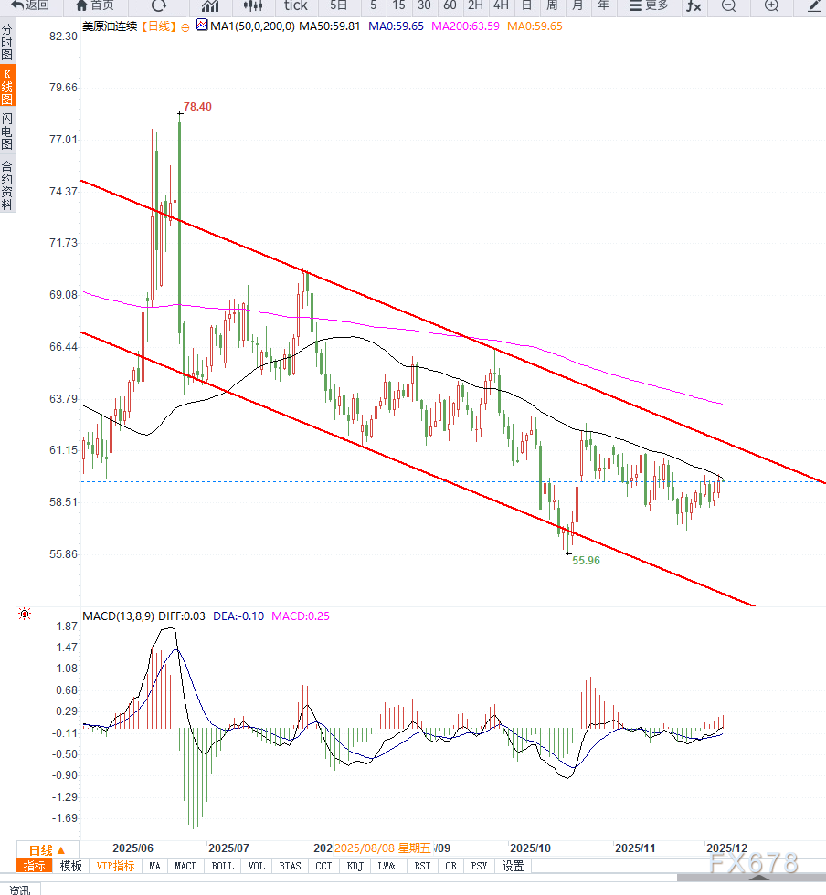 汇通财经APP讯——油价在周五亚盘时段延续反弹,背后动力来自宏观预期与供应不确定性共同强化。前一交易日,WTI最近月合约上涨1.2%,收于每桶59.67美元,市场情绪逐渐转向偏多。