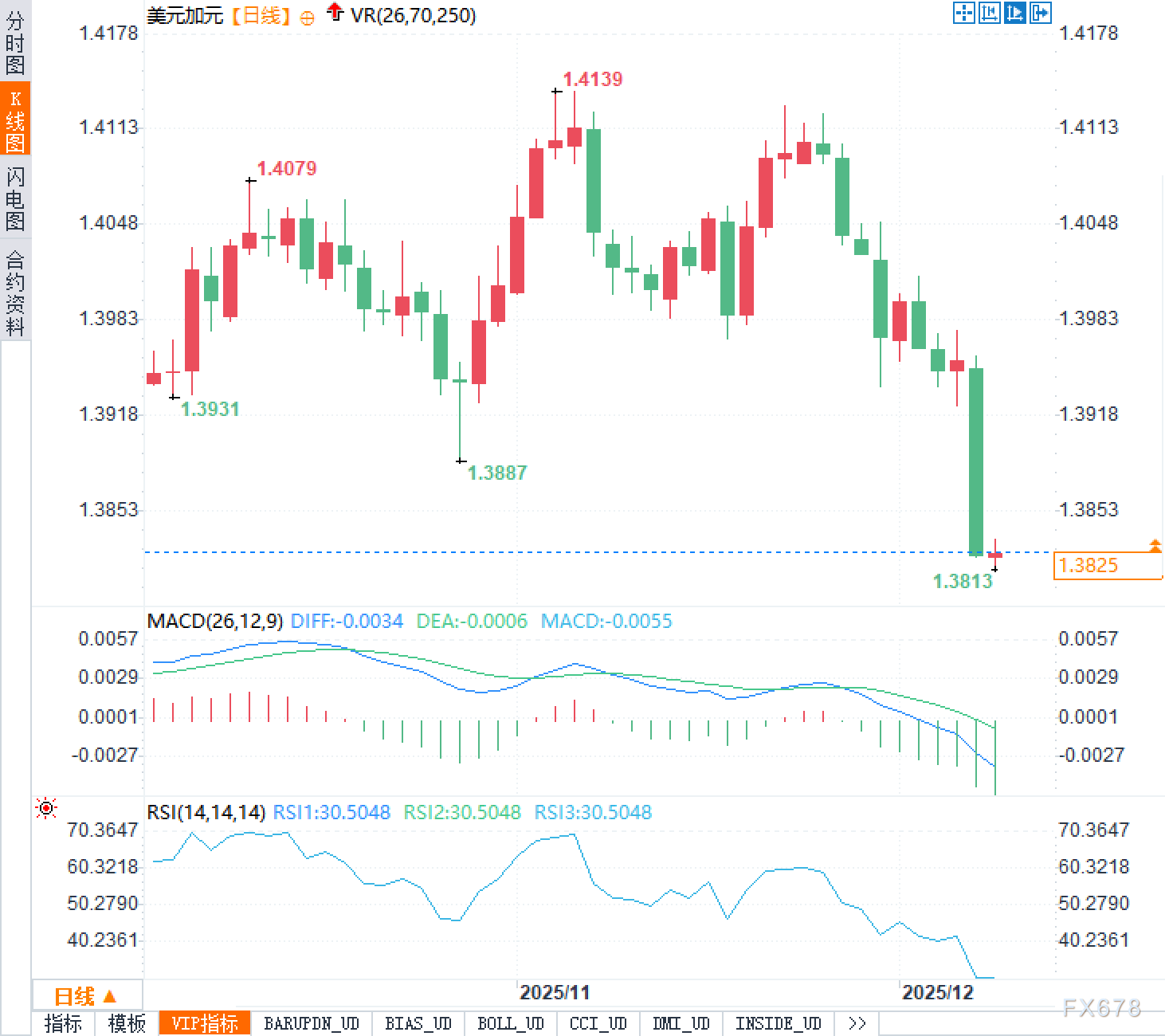 汇通财经APP讯——12月8日,星期一欧洲时段。美元兑加元目前报1.3825,近期走势明显受到加拿大最新劳动力市场数据的推动。上周五,尽管美国没有发布重要的非农报告,但加拿大公布的11月就业数据却成为市场的焦点。数据显示,加拿大当月新增就业岗位约5.3万个,远超市场预期。此前,多数经济学家预测就业人数将出现小幅下滑,结果却再次与预测背道而驰。这不仅是单月的偶然表现,更延续了过去三个月的整体趋势——在这段时间里,加拿大经济累计创造了约18万个新岗位,彻底扭转了此前数月增长乏力的局面。