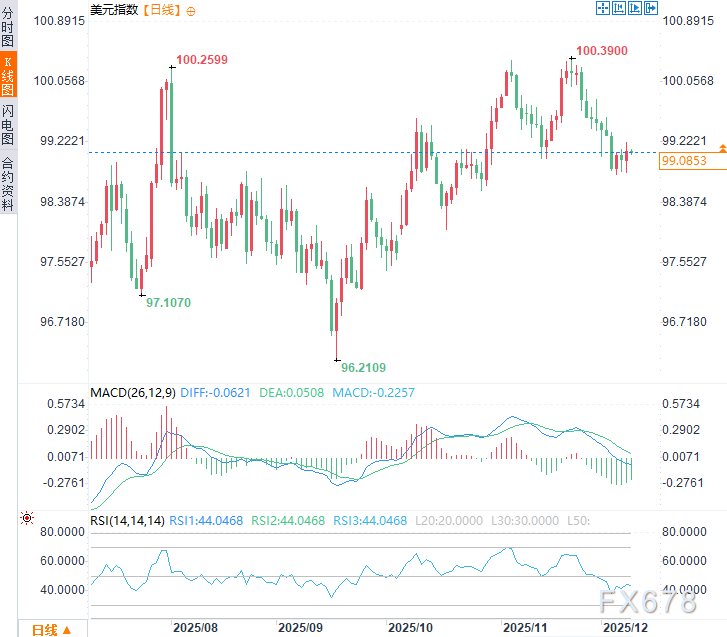 汇通财经APP讯——周一(12月8日)美盘早盘,美元指数小幅走高,交易员试图收复50日均线99.169这一关键水平——守住该位置将为美联储关键会议周的美元短期动能提供稳定性。尽管市场普遍预期周三的降息...