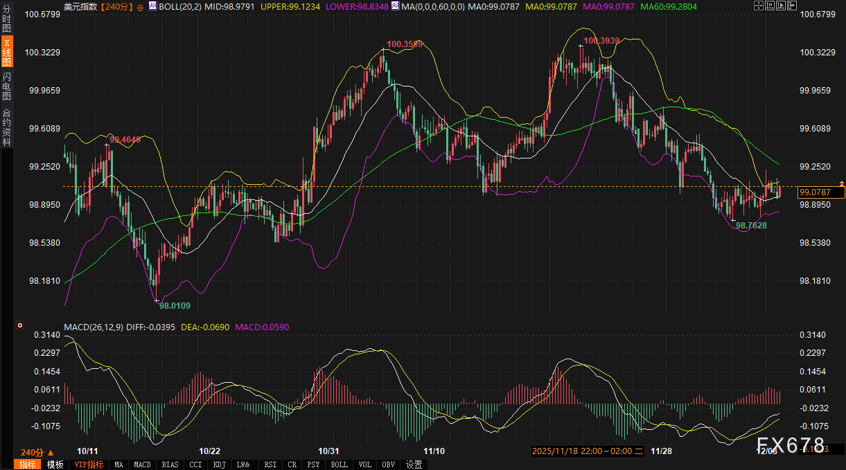 2025年12月9日,美元指数在美联储12月议息会议的关键窗口期呈现震荡上行态势。截至当日16时30分,美元指数报99.15,较前一交易日上涨0.25%,日内最高触及99.22,最低下探至98.87,...
