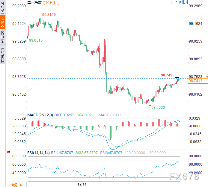 汇通财经APP讯——美元指数周四继续呈现负面基调,在98.55附近维持弱势震荡。这种走势主要受到美联储利率决定与政策指引变化的影响。美联储如市场一致预期,将政策利率再度下调25个基点至3.50%-3....