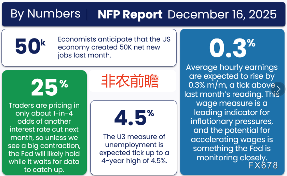 汇通财经APP讯——12月16日周二,美国劳工统计局将发布因政府停摆延迟的11月就业数据,同步披露的还有10月就业报告中机构调查维度的核心指标——含非农就业人数(NFP)与平均时薪。