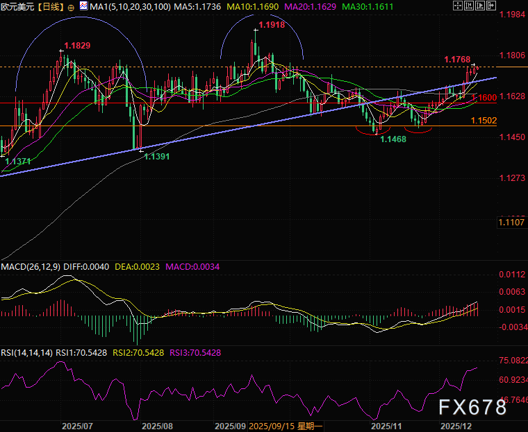 汇通财经APP讯——周二(12月16日)亚欧时段,在美国公布非农数据之前欧元兑美元保持强势交投于1.1758附近,欧元的高位支撑逻辑在12月欧元区PMI数据中得到进一步印证——尽管德国为首的商业活动增速放缓、制造业与服务业呈现分化,但全年连续扩张的基本面韧性、年末加剧的通胀压力,持续强化欧央行维持利率不变的政策立场,为欧元兑美元的多头交易提供了清晰锚点。