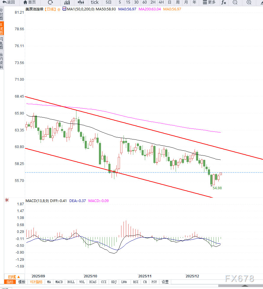 汇通财经APP讯——周五(12月19日)欧盘时段,WTI原油期货价格走高,盘中报56.55美元/桶,盘中涨幅近1%。当前市场中,供应过剩、需求疲软的基本面因素,与制裁及油轮封锁可能引发的供应中断风险相...
