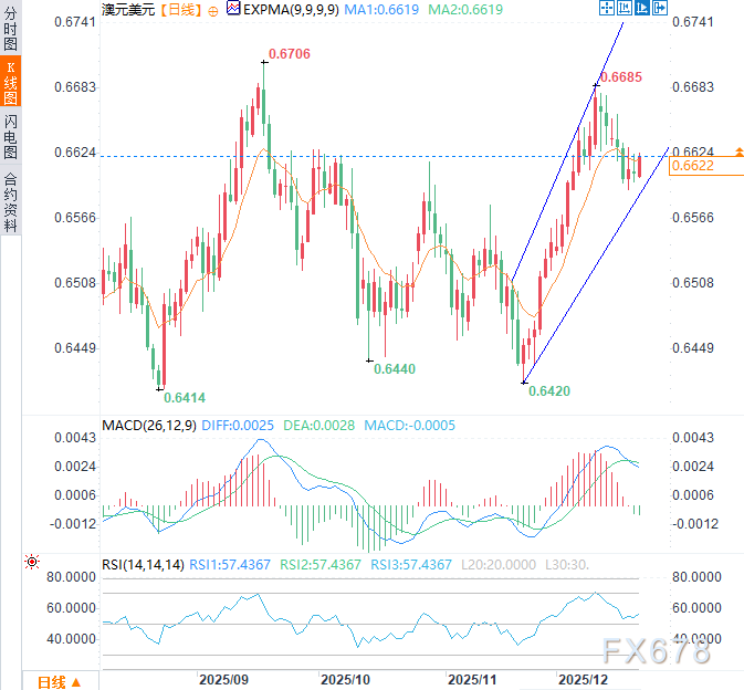 汇通财经APP讯——周一(12月22日)亚市时段,澳元兑美元震荡上涨,涨幅约0.24%,因澳洲联储鹰派预期提振与美元走低支撑。市场交易者或将重点关注即将于周二公布的澳洲联储会议纪要,以寻找澳洲联储政策前景及其对通胀压力评估的相关线索。