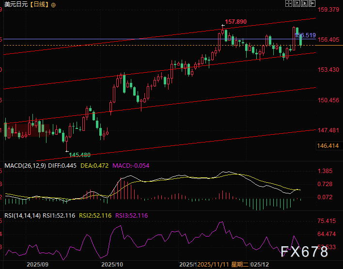 汇通财经APP讯——周二(12月23日)欧洲交易时段,美元兑日元跌幅一度扩大至-0.85%,下探至155.65一线,成为外汇市场的核心波动品种。