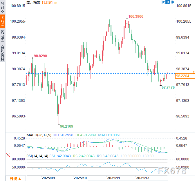 汇通财经APP讯——周二(12月30日)亚洲交易时段,衡量美元兑六大主流货币的美元指数(DXY)保持震荡企稳态势,交投于98.00关键心理关口附近,FOMC12月会议纪要公布前,交易员普遍采取谨慎观望...