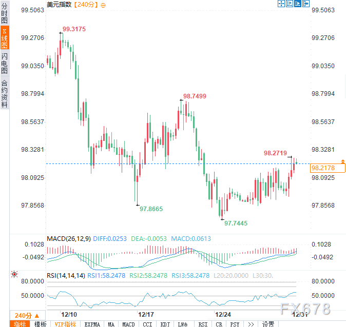 汇通财经APP讯——周二(12月30日)亚洲交易时段,衡量美元兑六大主流货币的美元指数(DXY)保持震荡企稳态势,交投于98.00关键心理关口附近,FOMC12月会议纪要公布前,交易员普遍采取谨慎观望...