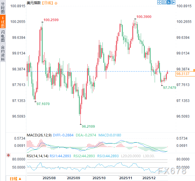 汇通财经APP讯——周三亚市时段,衡量美元对六种主要货币表现的美元指数(DXY)连续第二个交易日上涨,运行在98.30附近。不过,尽管短线企稳,美元整体走势仍受到中长期基本面因素的明显制约。 美联储周...