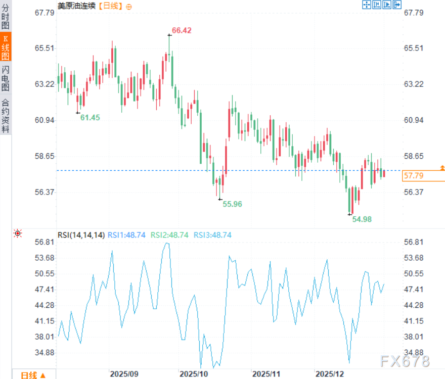 汇通财经APP讯——周五(1月2日)亚欧时段,美原油震荡上涨,目前涨幅约0.78%,交投于每桶57.87美元附近。这一上涨源于市场正在消化年初的复杂局势——包括乌克兰无人机袭击俄罗斯能源设施以及美国重启对委内瑞拉制裁,这两大事件都将直接影响全球石油供应流动。