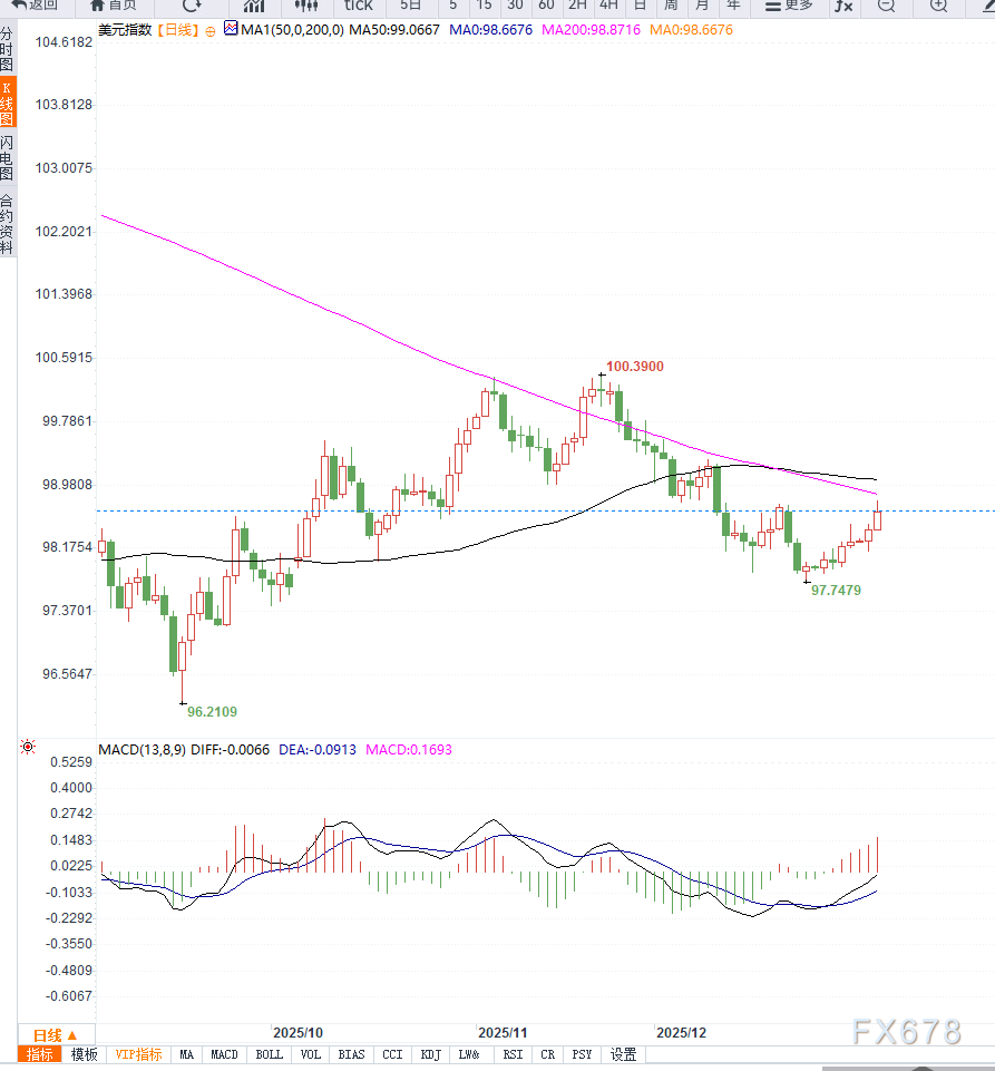 汇通财经APP讯——美元指数(DXY)在本周初延续反弹走势,亚洲时段升至98.60附近,录得连续第二个交易日上涨。