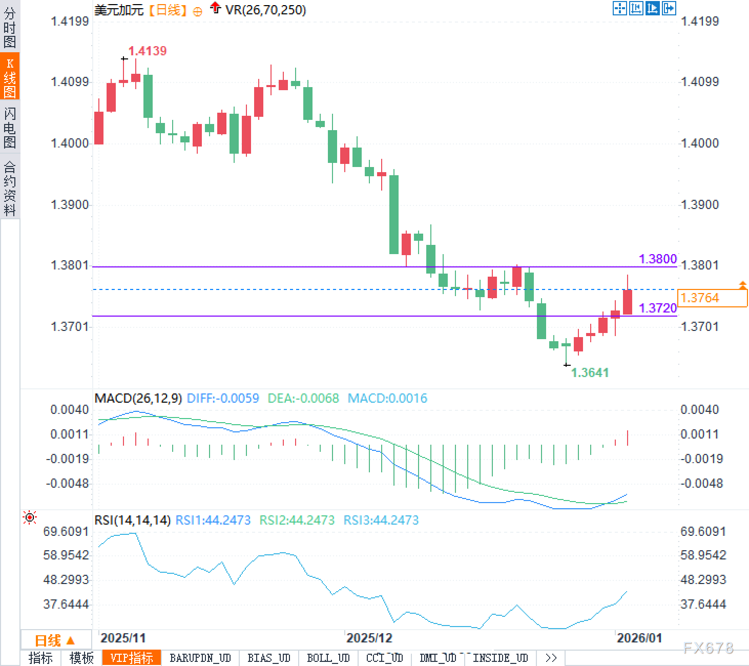 汇通财经APP讯——1月5日,星期一。美元整体维持偏强整理,而与大宗商品相关的货币则更容易受到原油与全球增长预期的扰动。美元兑加元欧洲时段在1.3765附近交投,延续自1.3640一线反弹后的修复走势。