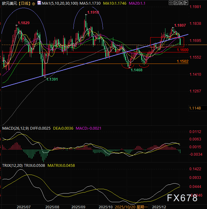 汇通财经APP讯——周一(1月5日)亚欧时段,欧元开盘即开始快速下跌,跌破了关键支撑,目前交投于1.1664附近,日内跌幅达到-0.47%,同时美元指数大涨0.35%。