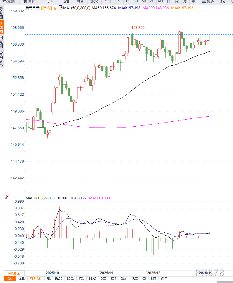 汇通财经APP讯——周五亚洲交易时段,日元继续承压,美元兑日元连续第四日走高,汇价回到157.30附近,刷新本周高点。