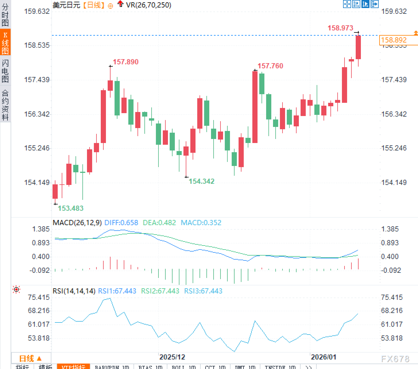 汇通财经APP讯——周二(1月13日),美元兑日元欧洲时段交投158.90附近,日内上涨约0.5%,距离160.00的心理整数关口仅一步之遥。这一位置并非普通的数字,而是长期被视为政策敏感区的“警戒线”。历史上,每当汇率接近或突破160,日本当局往往会通过“口头干预”释放信号,甚至不排除采取实际外汇操作来稳定市场。因此,当前市场的紧张情绪正在悄然升温。