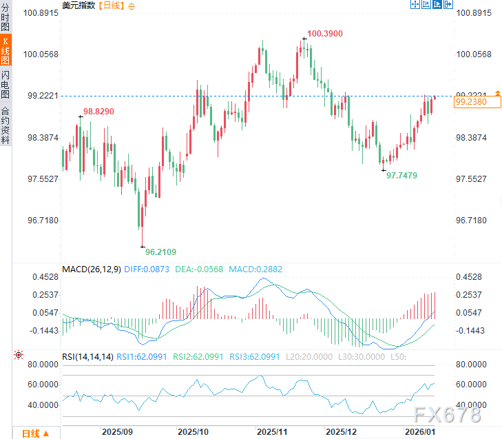 汇通财经APP讯——美联储独立性与白宫的政治博弈进入关键阶段。司法部对主席鲍威尔的调查与最高法院即将审理的理事罢免案相互交织,恐将演变为长期宪法僵局。市场担忧美国货币政策基石动摇,正谨慎评估这场史无前例的危机对利率路径与资产价格的深远影响。周三(1月14日)亚市时段,美元指数于99.23附近窄幅震荡。