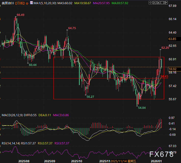 截至发稿,WTI原油价格暴跌2.06美元,跌幅3.31%,报59.83美元/桶;布伦特原油亦下探2.32美元,跌幅3.49%,报价64.19美元/桶。