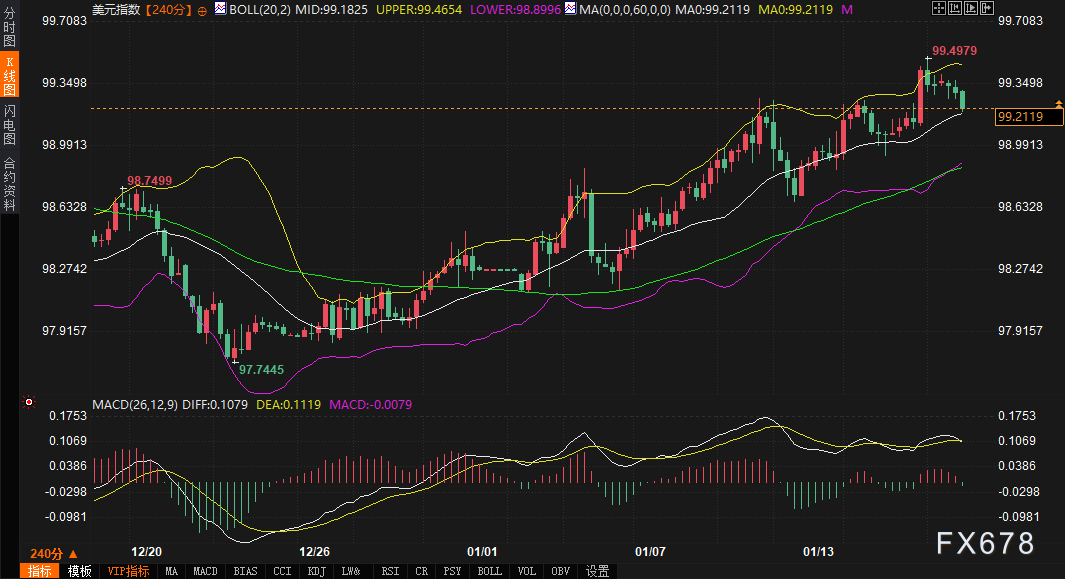 汇通财经APP讯——周五(1月16日),美元指数交投于99.20附近,日内微跌0.14%,整体延续了近期的窄幅整理格局。市场的焦点已从纯粹的经济数据,急剧转向可能重塑美联储权力结构与政策独立性的政治博弈。现任主席鲍威尔任期将满之际,围绕其去留、司法压力以及特朗普政府对央行施加影响的企图,正成为主导美元中期走势的潜在决定性力量。价格在关键的技术区间内徘徊,等待基本面的破局信号。