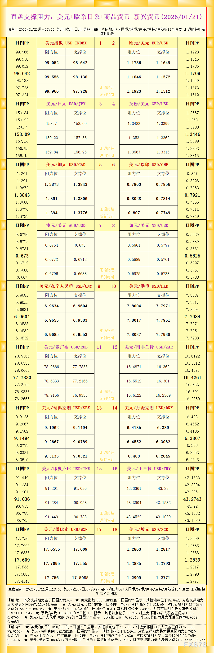 汇通财经APP讯——一张图看商品支撑阻力:金银油气+铂钯铜+农产品期货,更新于2026年1月21日周三13:05,具体覆盖金银铂钯铜+原油天然气燃油+小麦玉米棉花14个品种,更多详见汇通财经析若特制图...