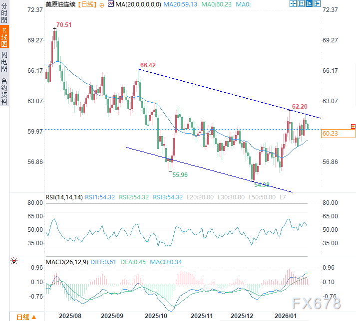 汇通财经APP讯——周二(1月27日)亚市时段,美原油价格震荡下跌,现交投于每桶60.30美元附近,日内跌幅约0.6%,延续前一交易日跌势,尽管一场席卷美国的特大冬季风暴导致原油生产和炼油厂运营均受到影响,但显然局部供应中断并未阻止油价下跌,更大范围的供给过剩与俄乌美预计三方会谈的和平信号仍是油价头上的大山。