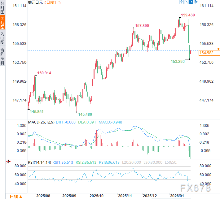汇通财经APP讯——周一(1月26日)亚欧时段,美元兑日元大幅低开后宽幅震荡,目前守住上周五全部跌幅后续跌1%,交投于154.15左右。近期,美日两国关于汇市联合干预的磋商信号持续释放,叠加市场对日本...