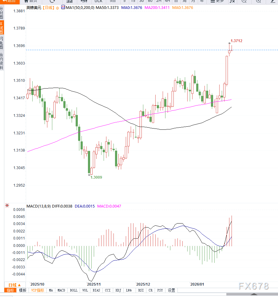 汇通财经APP讯——周二欧洲交易时段早盘,英镑兑美元(GBP/USD)延续强势反弹,汇价升至 1.3680附近,创下 2025年9月17日以来的最高水平。