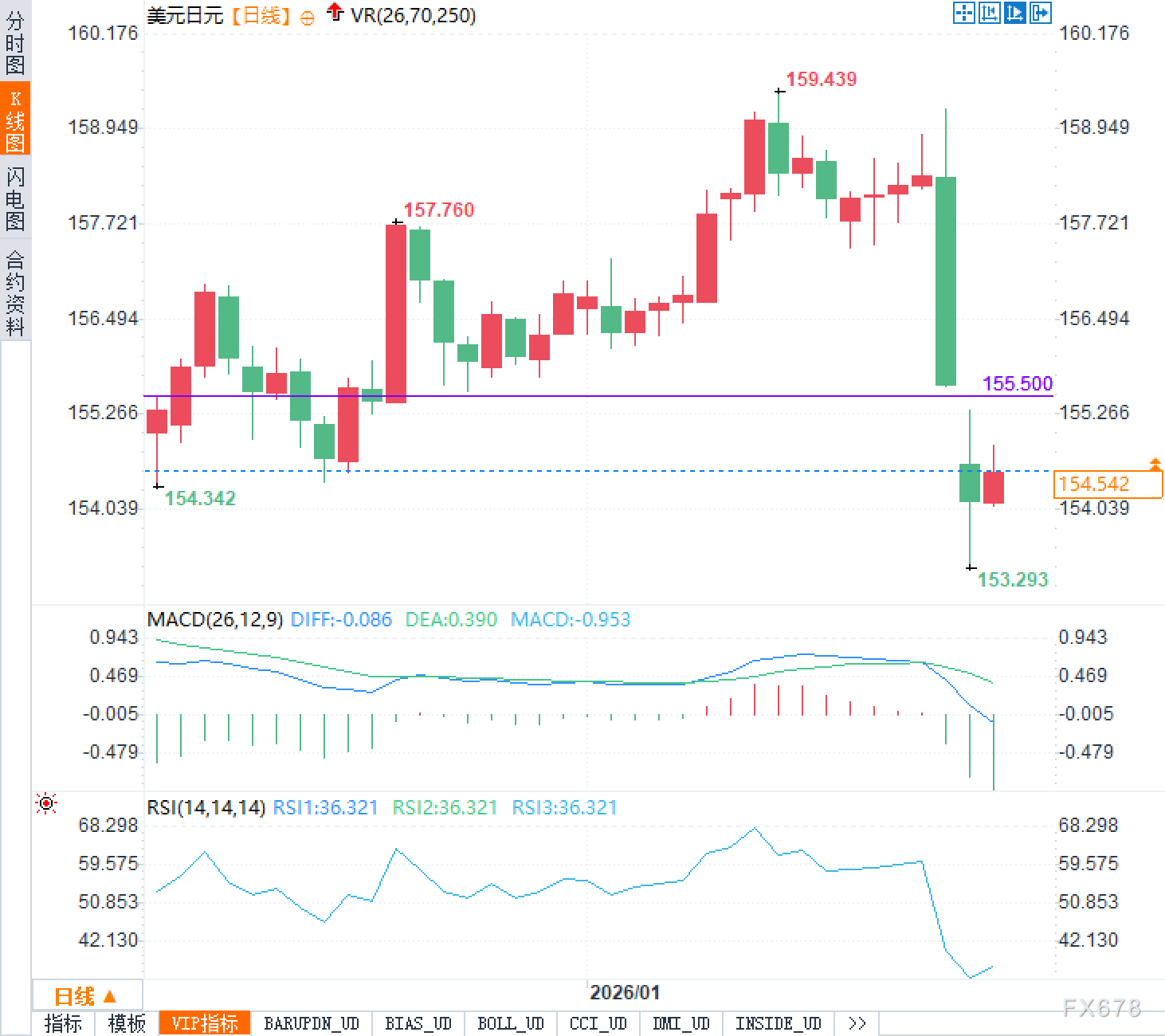 汇通财经APP讯——上周五以来,美元兑日元经历了一轮急跌,一度从159.00附近的高位在短短几秒内跳水约200点,令无数交易员措手不及。这种速度极快的下跌并非源于基本面突变,而是市场情绪与技术结构共振的结果。随后行情出现小幅回升,截至今日(1月27日)欧洲时段,汇价上涨0.23%,回到154.50附近。