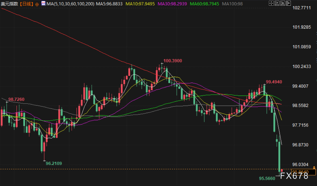 受多重政策不确定性及市场对美日协同干预汇市的预期影响,美元汇率周二显著走低。美元指数下跌0.9%,收于96.212,创下2022年2月以来的近四年最低水平。