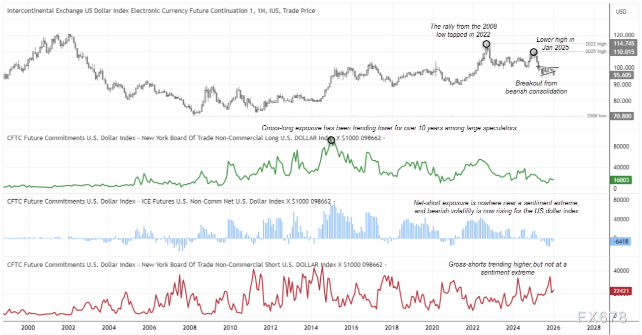 汇通财经APP讯——周二(1月27日),美元指数(DXY)交投于96.6一线附近,距离去年9月低点咫尺之遥。回顾近七个交易日,市场见证了美元近乎单边的急剧下挫,自1月中旬高点累计跌幅已达约3%,月内跌...