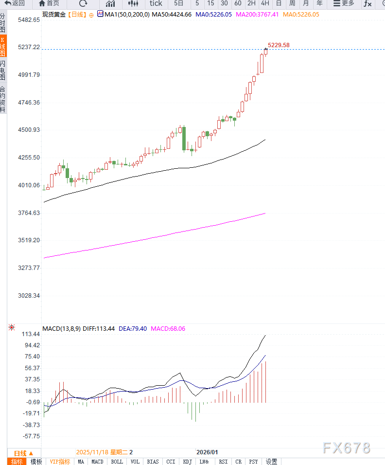 汇通财经APP讯——周三(北京时间1月28日)亚市早盘,现货黄金交投于5167美元/盎司附近,金价周二再创历史新高至5190.20美元/盎司,日内有望测试5200美元/盎司关口;主要得益于地缘政治紧张...