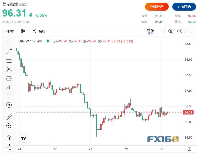 汇通财经APP讯——1月29日周四,美元指数欧洲时段运行在96.00附近,日线图上的下行斜率明显加大,走势显得愈发疲软。此前该指数曾在100.3900一带形成阶段性高点,但随后震荡回落,未能守住强势。...