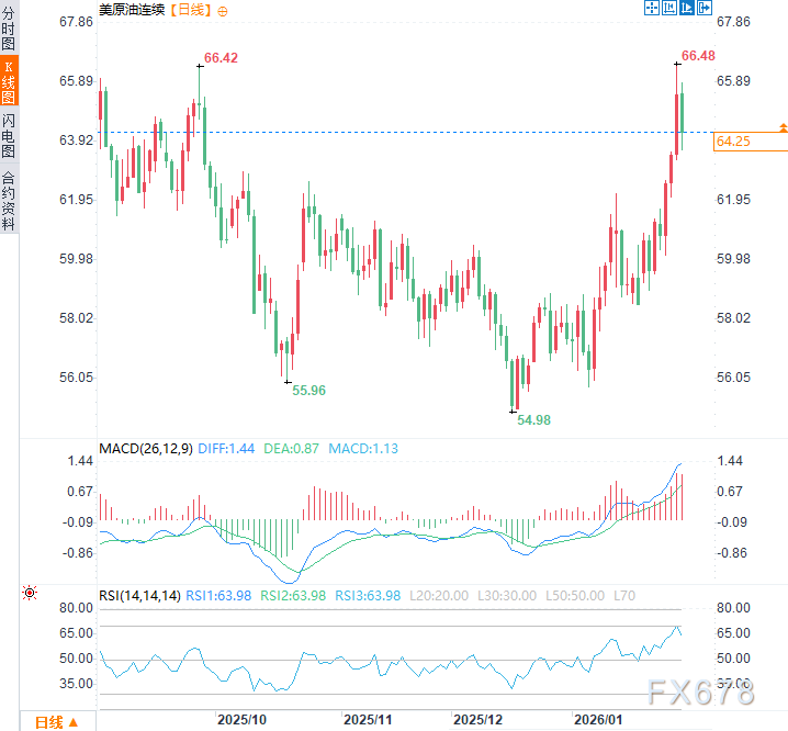 叠加美元情绪回暖,周五(1月30日)亚欧时段,美原油价格震荡下行,现交投于每桶64.20美元附近,日内跌幅约1.9%。