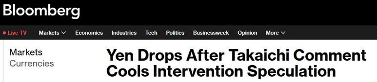 FX168财经报社(亚太)讯 美国彭博社周一(2月2日)报道称,日元走弱,此前日本首相高市早苗(Sanae Takaichi)表示,疲软的汇率可能为出口产业带来重大机遇,从而给市场对其政府即将出手干预、支撑日元的猜测降温。