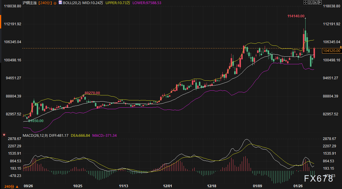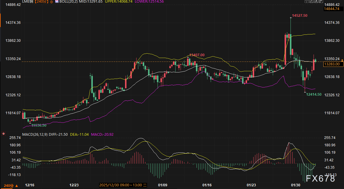 汇通财经APP讯——周二(2月3日),国内外铜价在经历了连续数日的深度回调后,迎来显著反弹。伦敦金属交易所(LME)三个月期铜价格大涨逾4%,重返每吨13400美元上方;上海期货交易所沪铜主力合约日间收盘上涨2.60%,报每吨104500元人民币。此次反弹修正了前一阶段自历史高位回落的部分跌幅,市场在供应担忧与长期需求前景的支撑下,试图寻找新的平衡点。