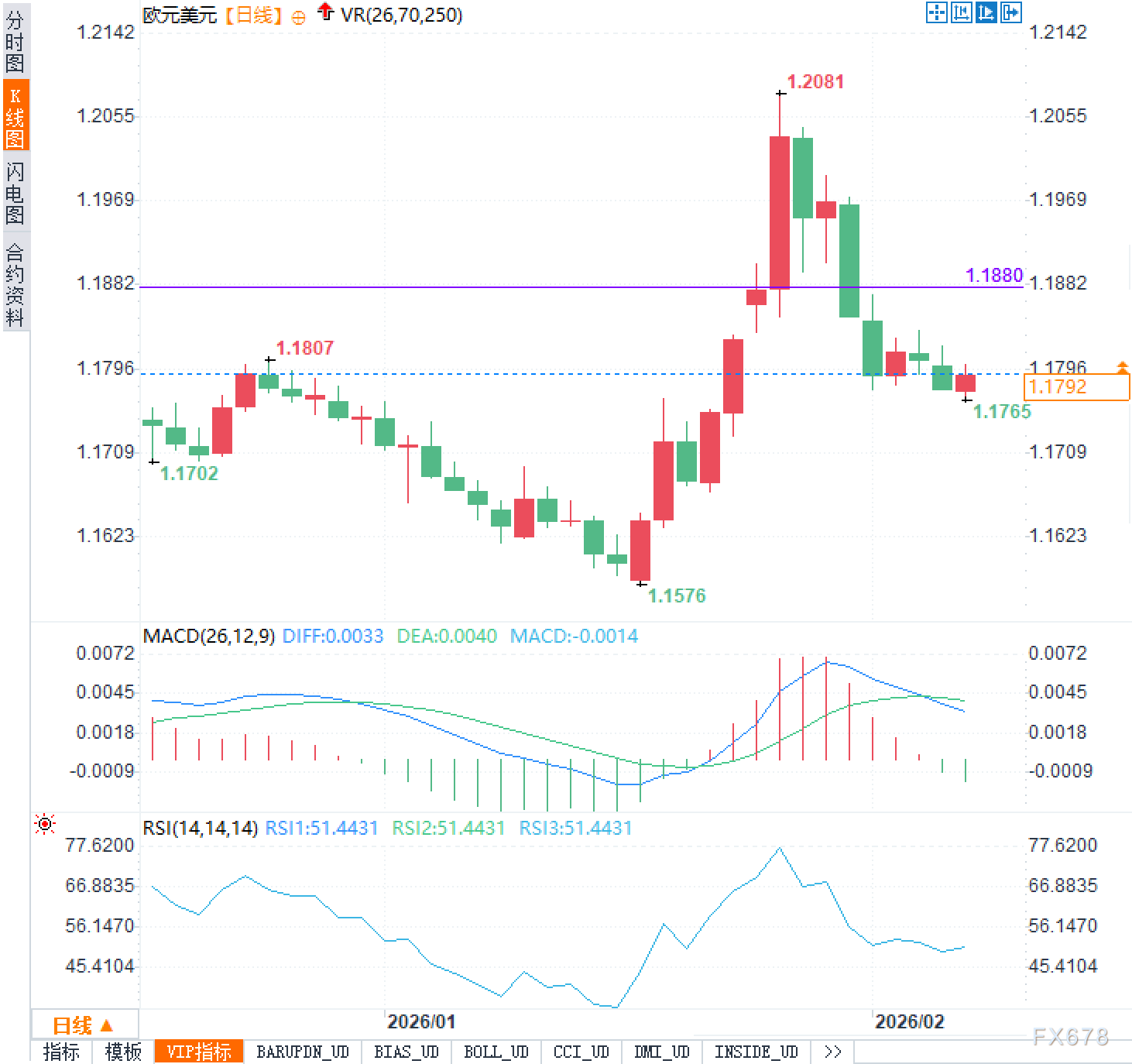 汇通财经APP讯——2月6日周五,欧元兑美元在触及两周新低1.1765后出现小幅反弹,欧洲时段交投于1.18附近。表面上看汇价有所企稳,但分析认为这更像是一次下跌后的技术性修正,而非趋势反转的信号。整个行情仍被压制在弱势格局中,1.1800关口成为重要阻力位,若无法有效突破并站稳,反弹很可能只是昙花一现。