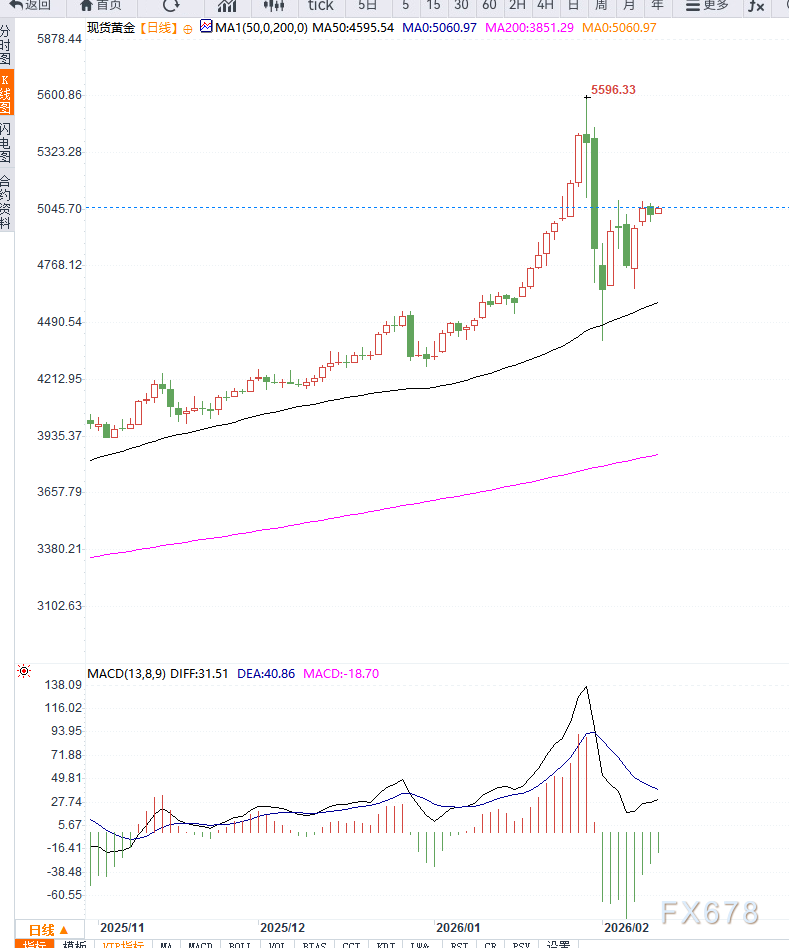 汇通财经APP讯——周三亚洲交易时段,黄金价格回升至5,050美元上方,维持再箱体上沿附近盘整。近期美元因美联储潜在降息预期走弱,为非收益资产黄金提供了支撑。