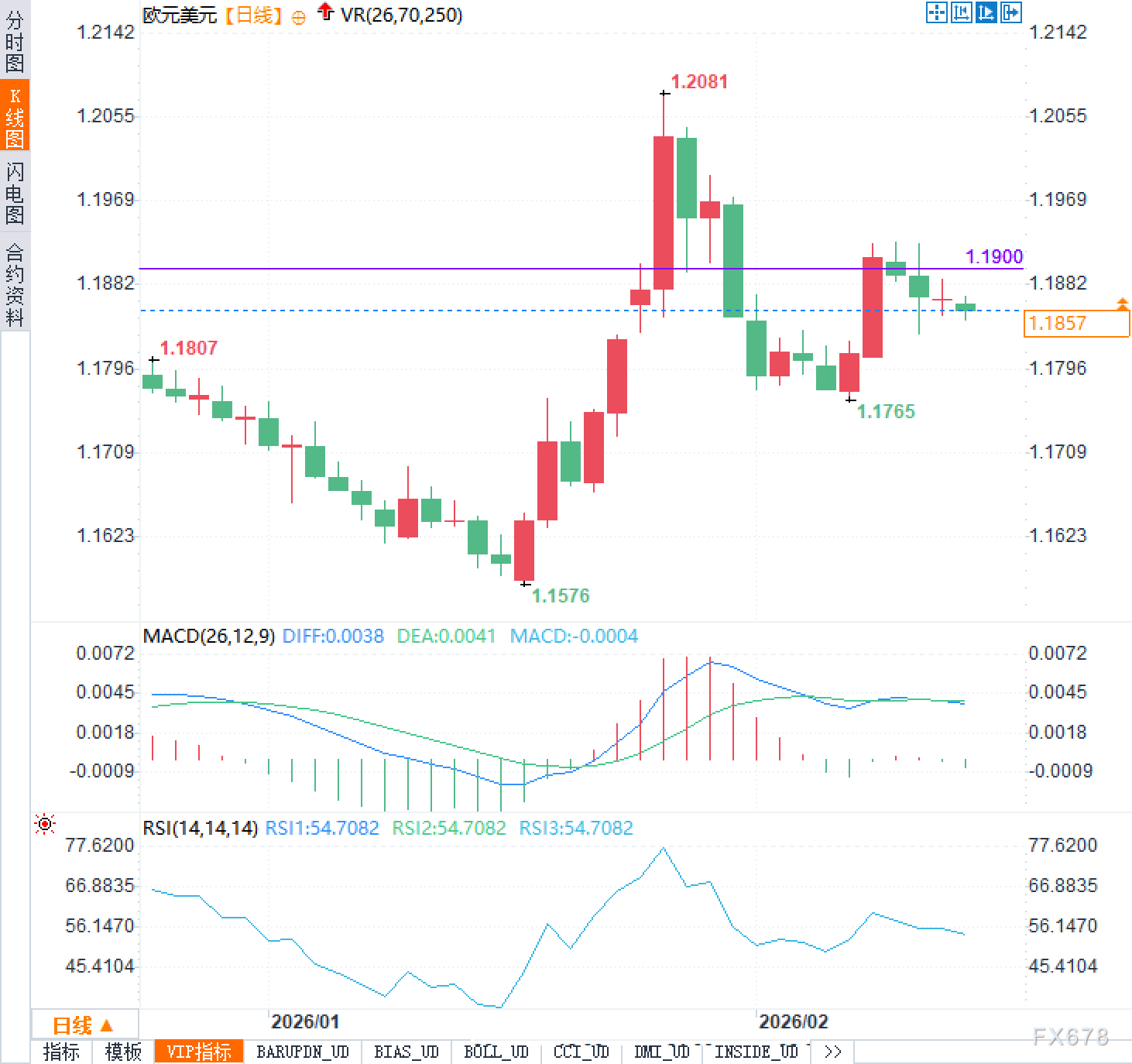 汇通财经APP讯——2月13日周五欧洲早盘,欧元兑美元继续在1.1850附近弱势震荡。尽管周四汇价收盘基本持平,但盘中反弹乏力,上攻动能明显不足,技术形态逐渐偏向回调修正。市场注意力正从前一日的风险情绪转移至今晚即将公布的美国1月通胀数据,波动率预期升温,交易员普遍选择观望,等待新的定价信号出现。