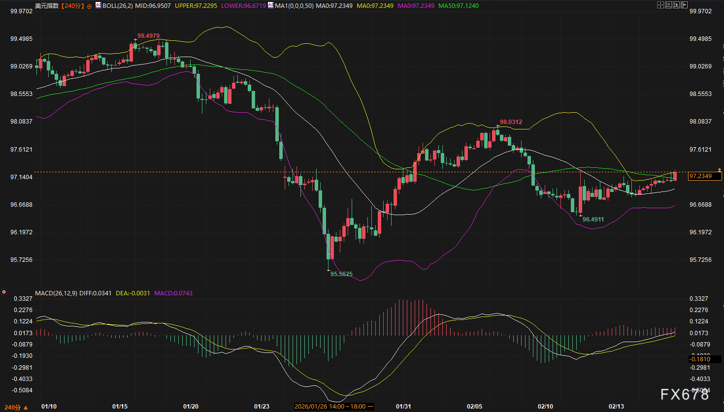 汇通财经APP讯——周二(2月17日),美元指数显现企稳迹象,当前在97.23附近震荡,较1月底的低点95.56有所回升。此前美元经历了连续四个月的下滑,累计跌幅约6.7%,一度触及四年低位。近期美元逐步摆脱下行压力,市场关注点正重新转向美国经济增长前景与政策环境的变化。