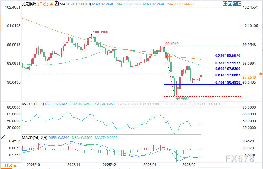 汇通财经APP讯——周二(2月17日),美元指数显现企稳迹象,当前在97.23附近震荡,较1月底的低点95.56有所回升。此前美元经历了连续四个月的下滑,累计跌幅约6.7%,一度触及四年低位。近期美元...