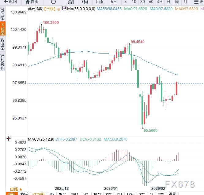汇通财经APP讯——美元指数在触及逾一周高点后进入整理阶段,目前维持在97.70附近波动。此前公布的FOMC会议纪要成为推动美元反弹的关键因素。