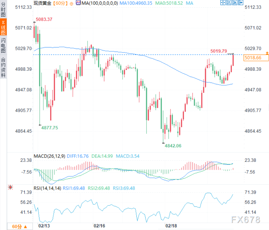 汇通财经APP讯——周四(2月19日)欧市时段,现货黄金震荡走强,现交投于每盎司5020美元附近,日内涨幅约0.85%,地缘政治风险持续为黄金提供支撑。但在美联储1月货币政策会议纪要略显鹰派的背景下,美元守住强劲涨幅,持稳于逾一周高位,现报97.66,这一点成为打压无息黄金的关键因素。