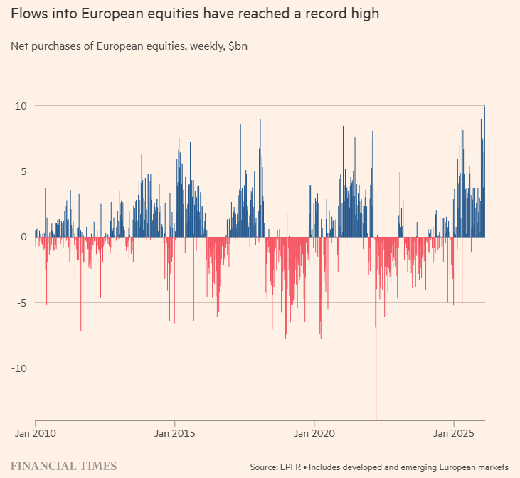 FX168财经报社(北美)讯 由于投资者希望降低对美国市场的曝露风险,加之对欧洲经济状况的乐观情绪日益增长,全球资金正以创纪录的规模涌入欧洲股市。追踪交易所交易基金(ETF)及共同基金流量的数据提供商...