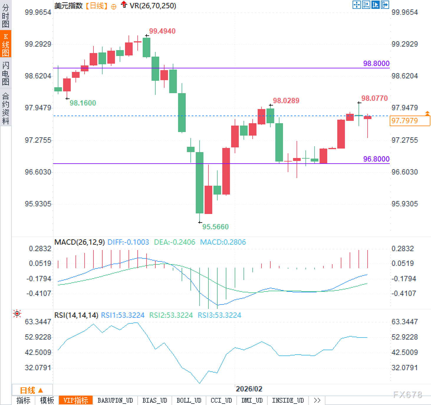 汇通财经APP讯——周一(2月23日)亚欧时段,美元指数延续上周五回调走势,走出探底小幅回升走势,目前交投于97.52,跌幅-2.8%。金融市场本周开局震荡加剧,投资者围绕美国贸易政策与地缘政治最新动...