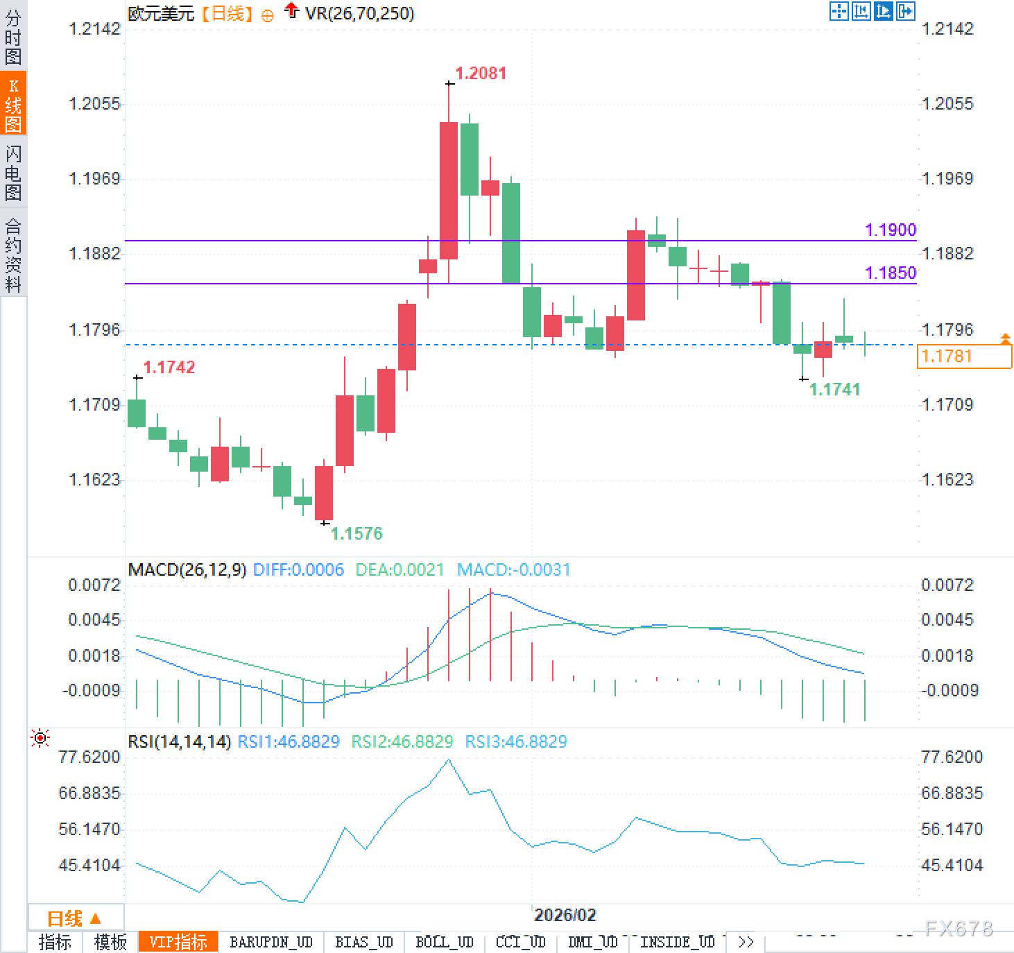 汇通财经APP讯——周一(2月23日)的欧元兑美元行情宛如坐了一趟过山车,早盘借着周末消息面的余温跳空高开,看似多头气势如虹,实则暗藏杀机。随着美股市场开盘后抛压骤增,全球风险偏好迅速降温,资金像受惊的鸟群一样疯狂涌入美元寻求庇护。这种避险需求的瞬间爆发,直接掐灭了欧元的上涨火焰,导致货币对在日内高点掉头向下,最终收盘几乎回到了上周五的起点。进入周二亚欧时段,疲态尽显的欧元继续在1.1800下方低位徘徊,报价维持在1.1780附近,整个市场陷入了方向不明、多空激烈拉锯的迷茫期。
